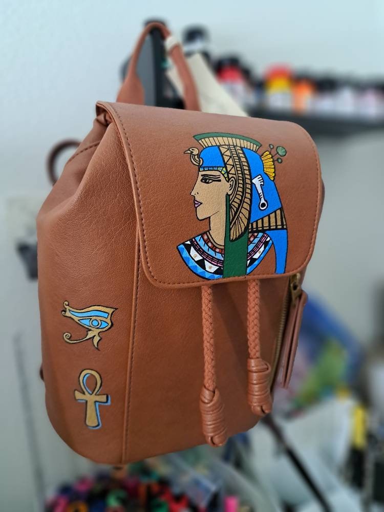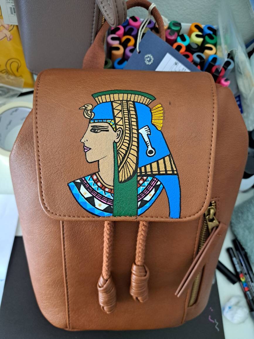 Cleopatra painted backbagGood quality paintsWater proof and anti crackingCustomized bags