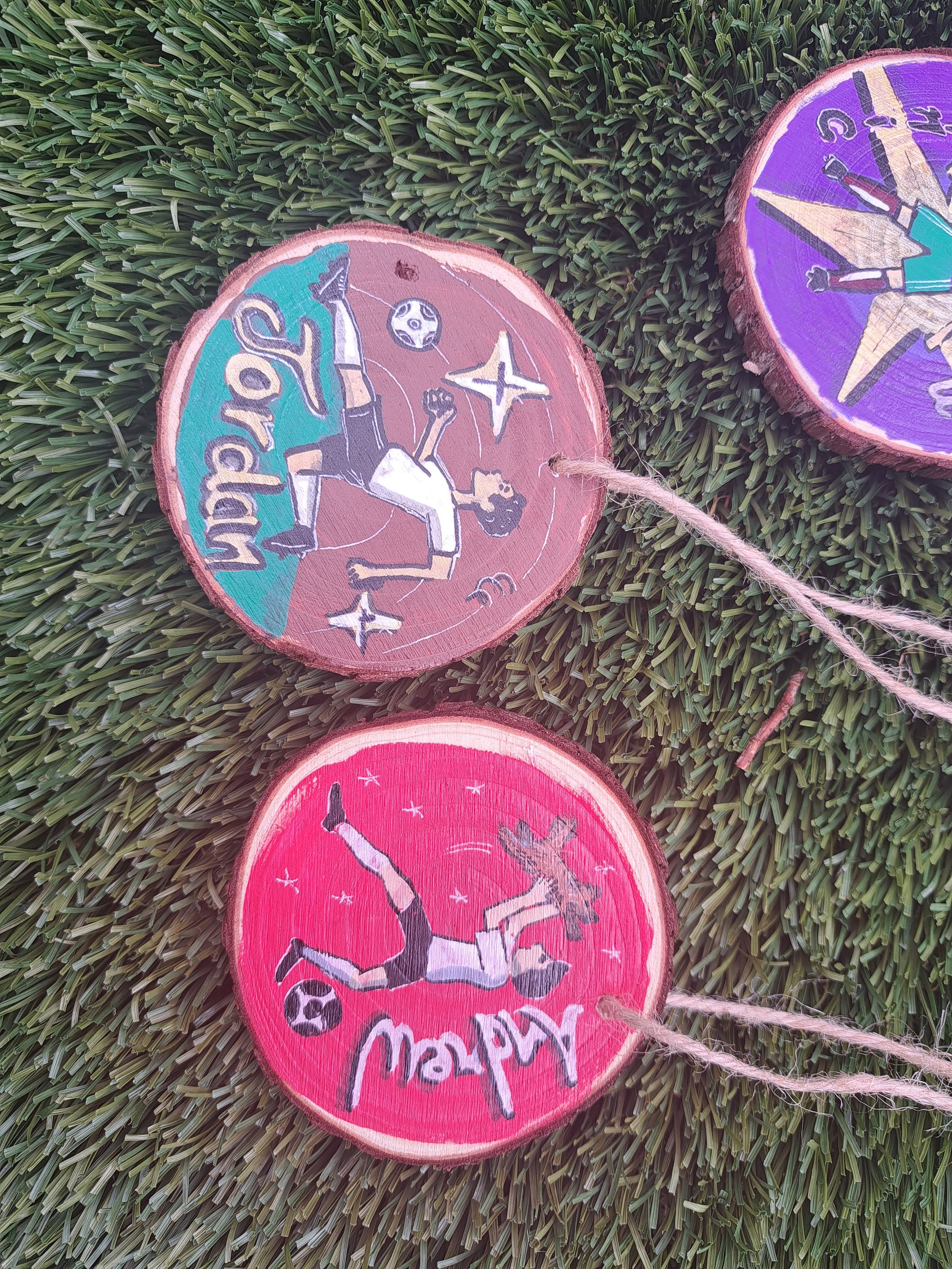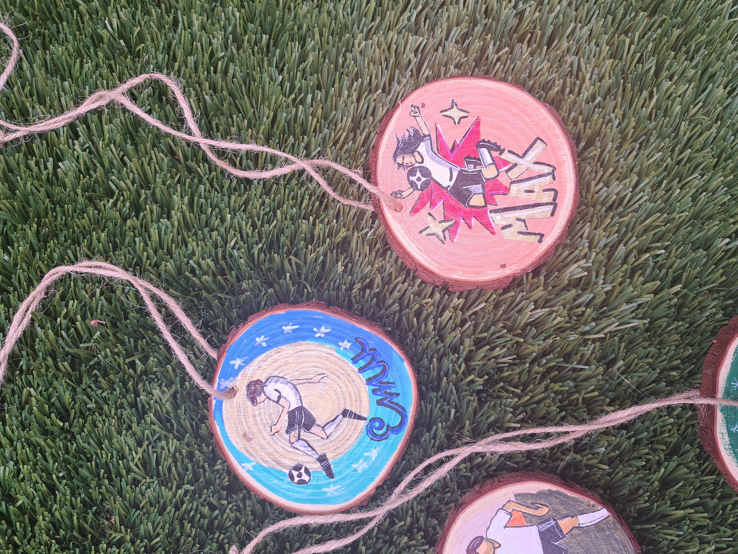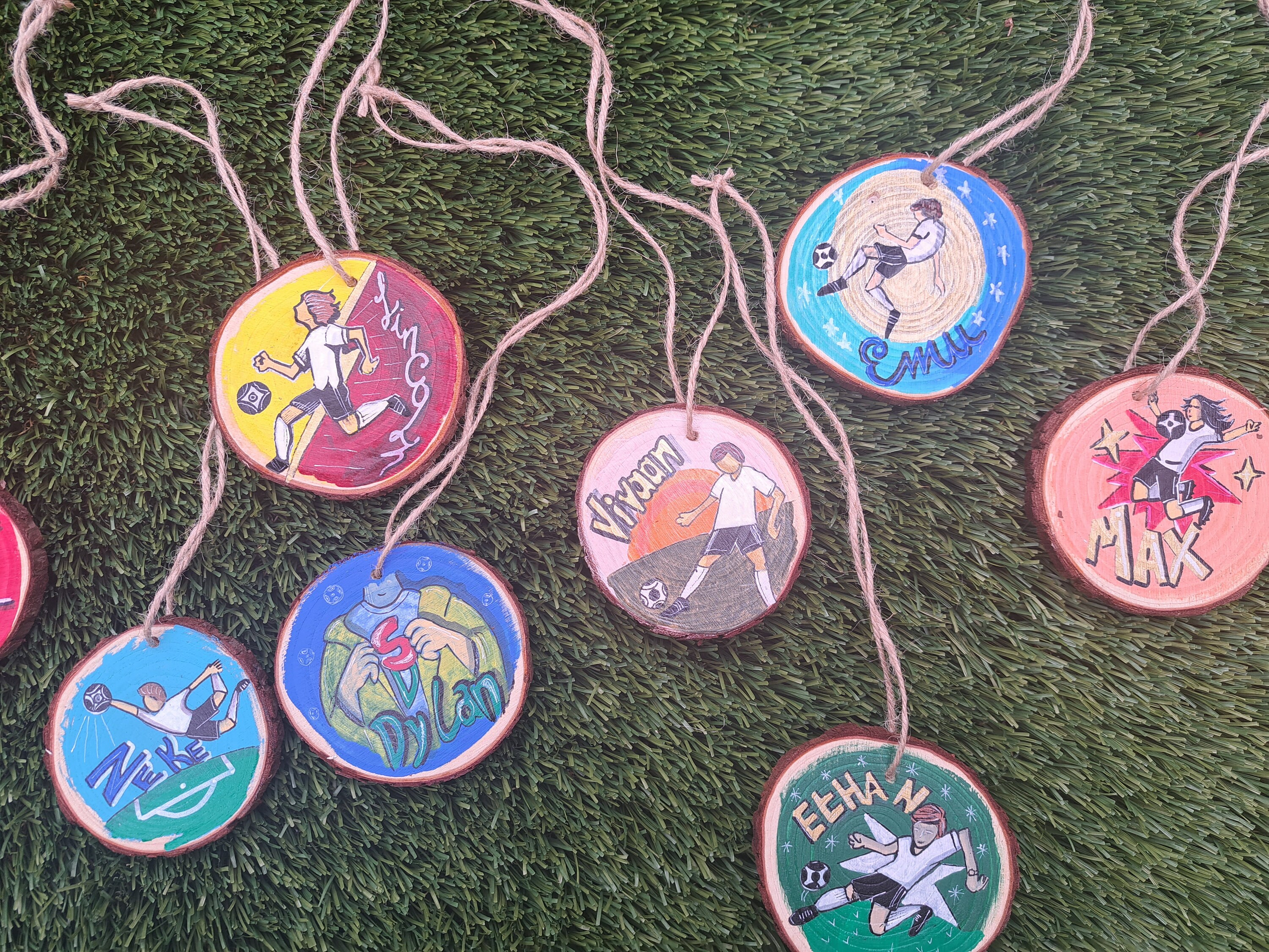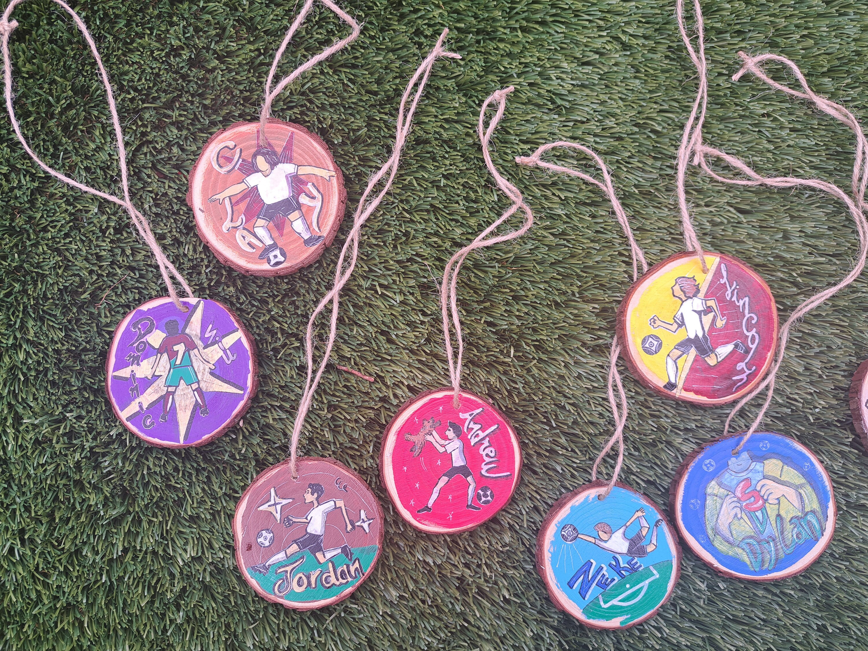 Suprise your team or camp members with this unique giftWooden unfinished coasters/ornaments with your desired designAcrylic paints and well finished Options to hang it or stick it with magnet