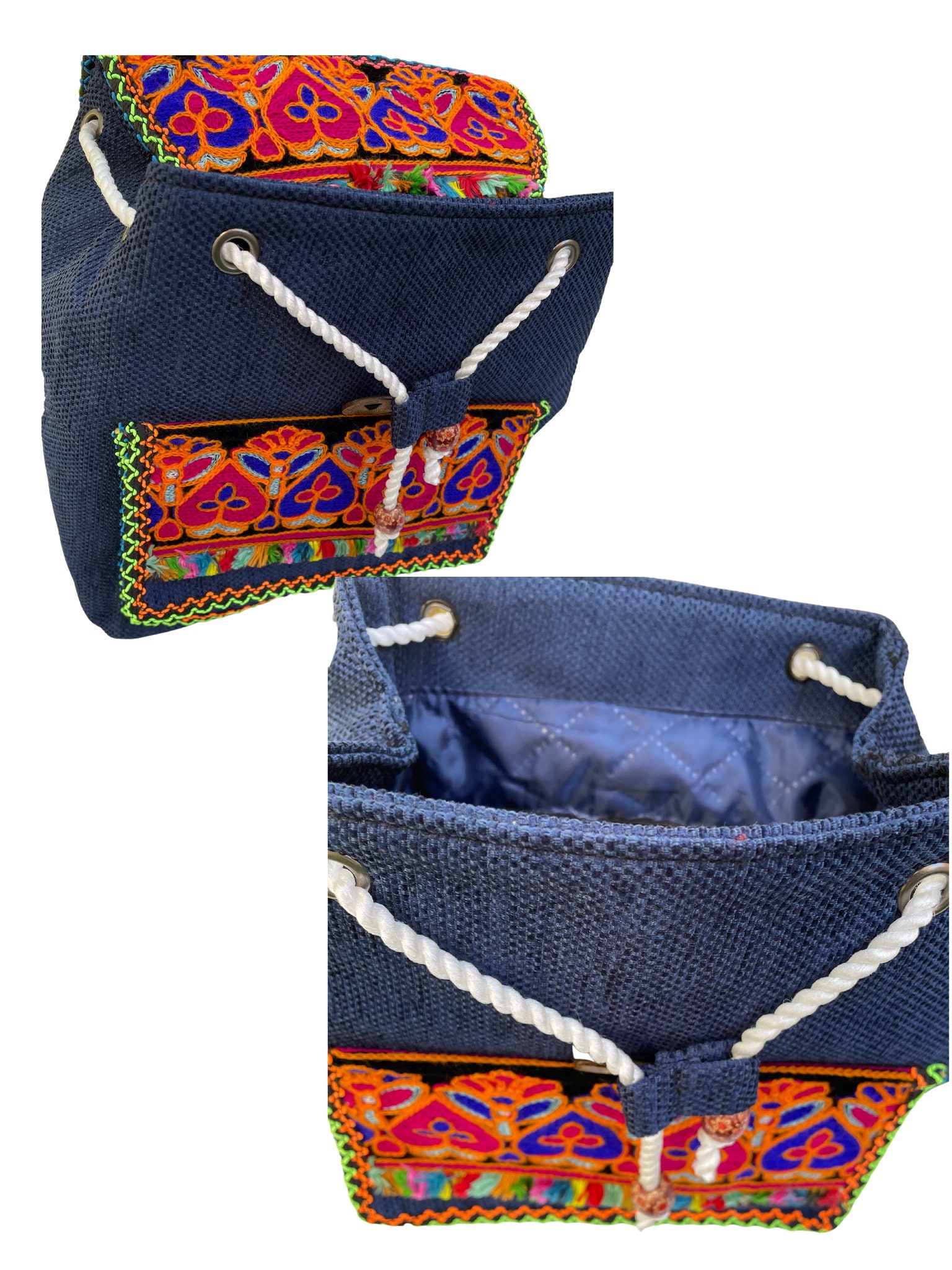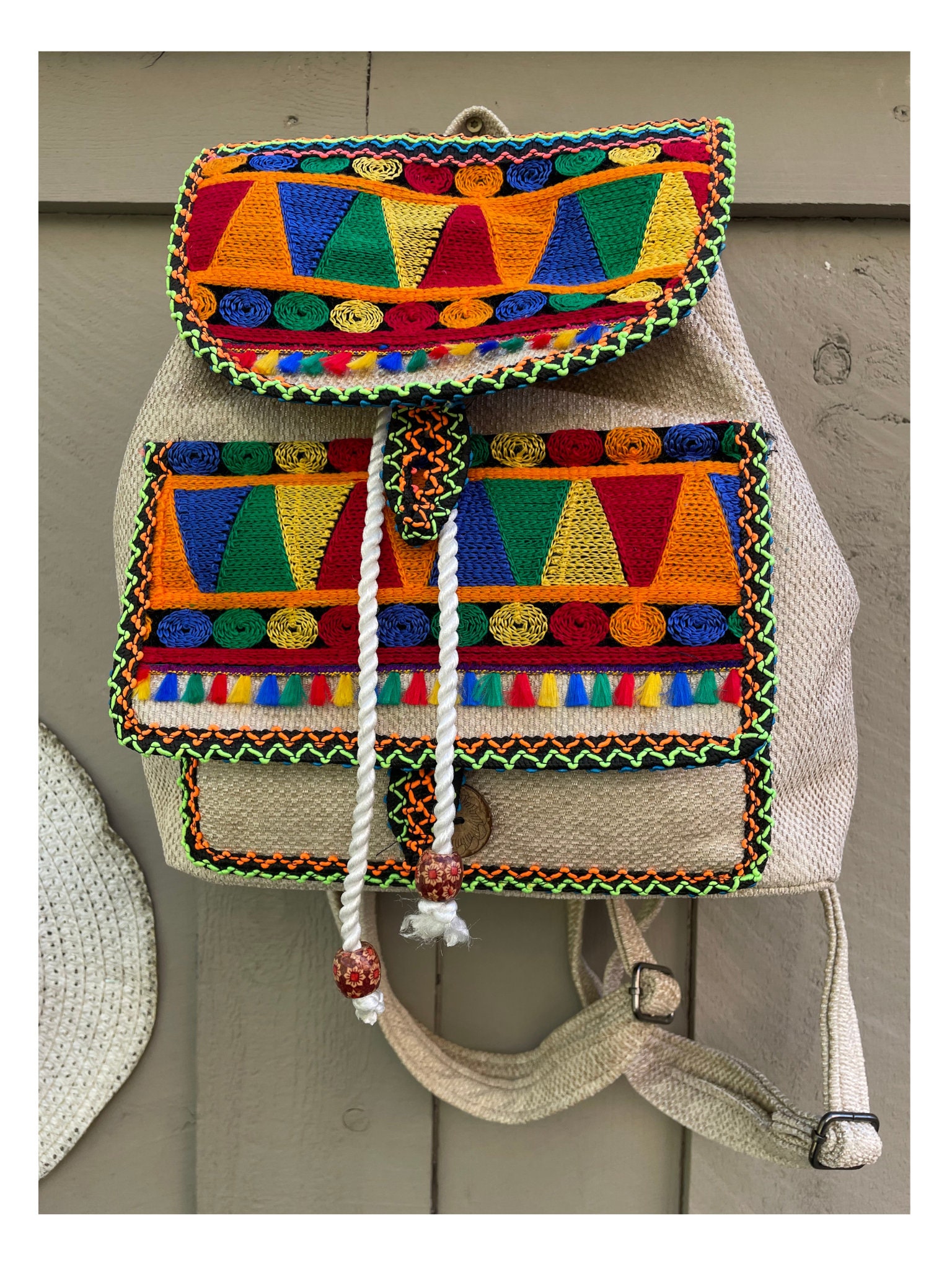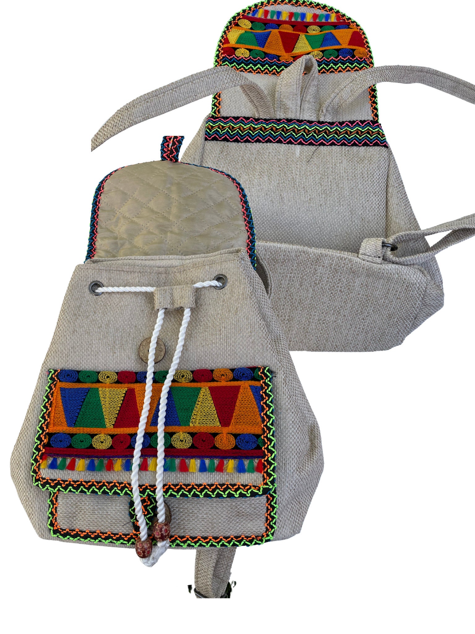 The backpack is 100% Egyptian cotton with an inner polyester compartment