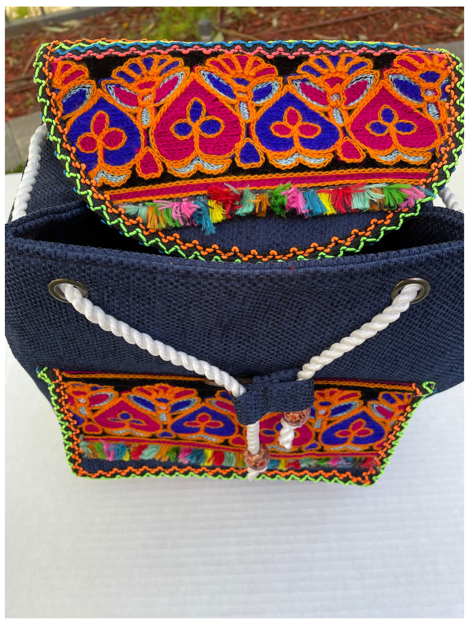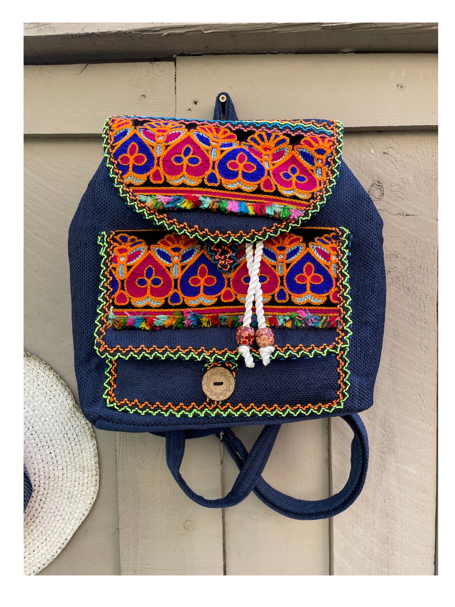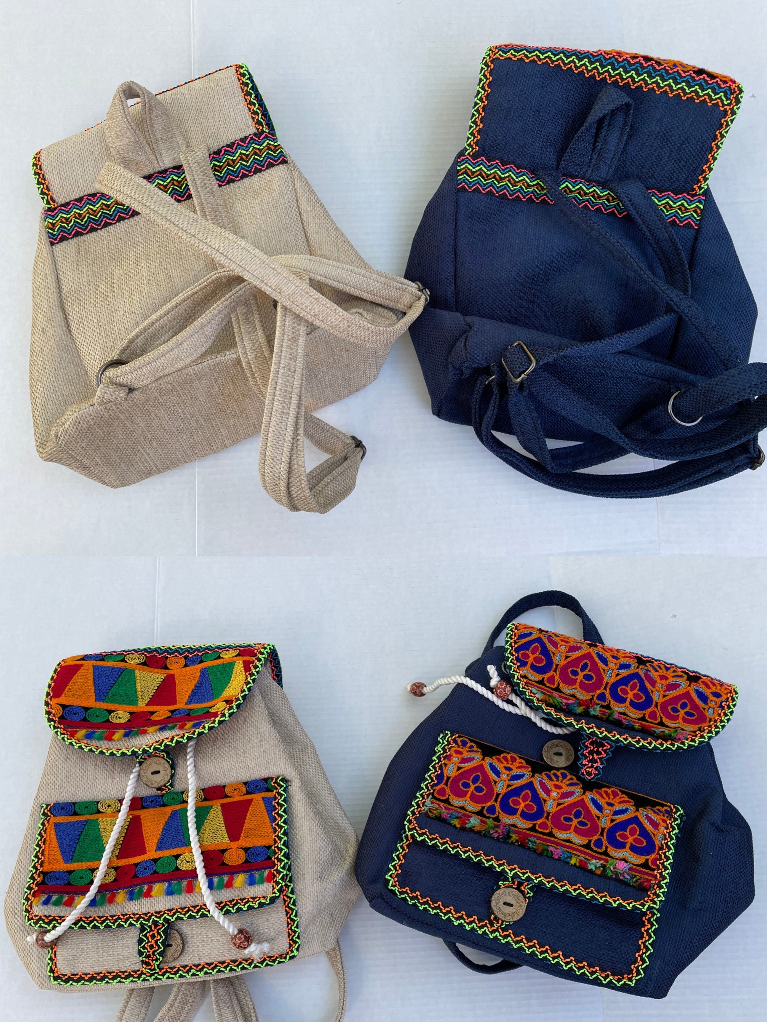 The backpack is 100% Egyptian cotton with an inner polyester compartment