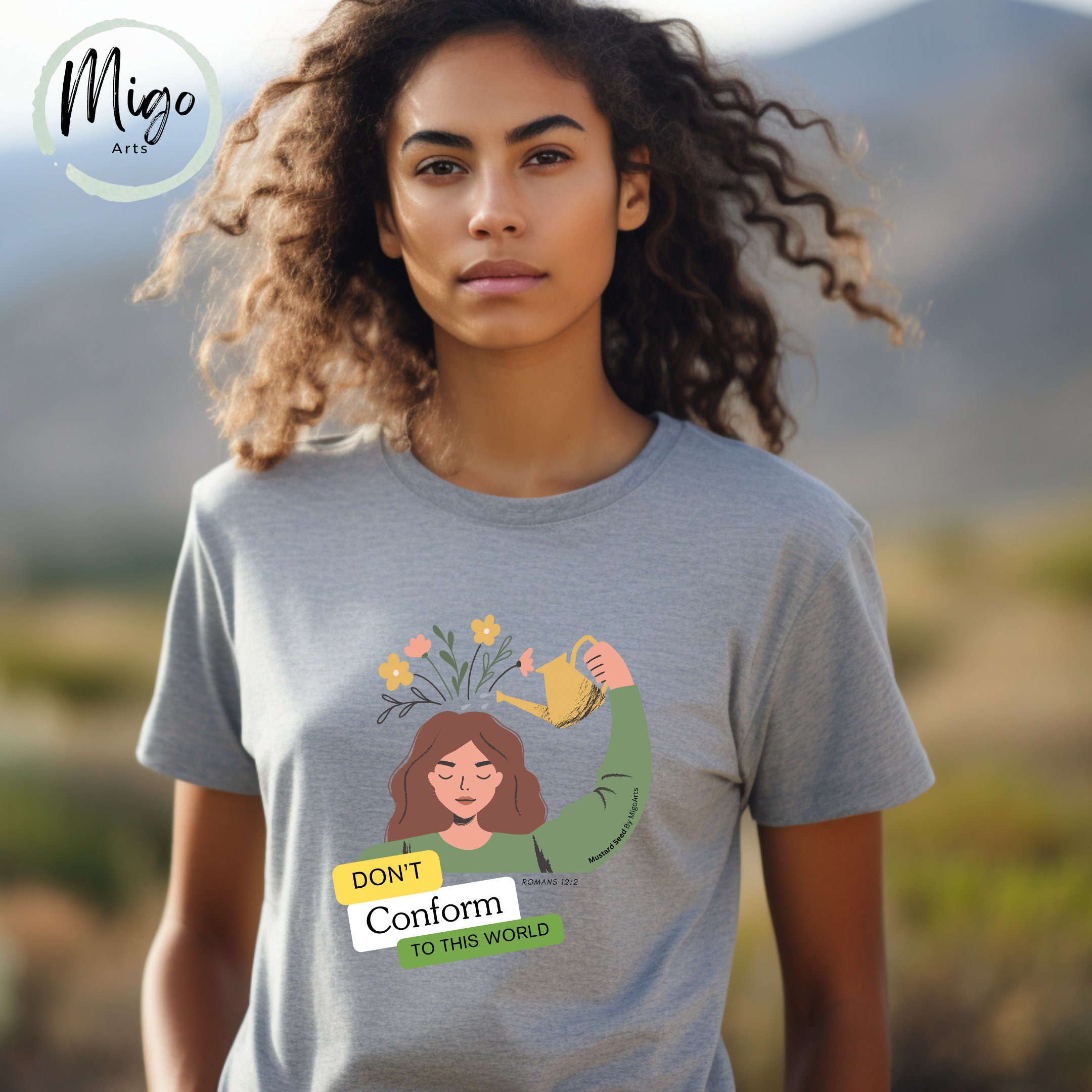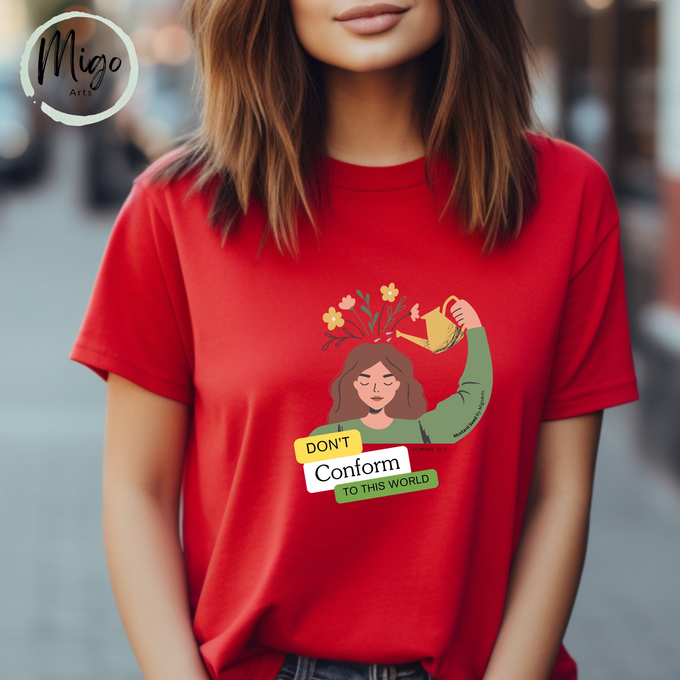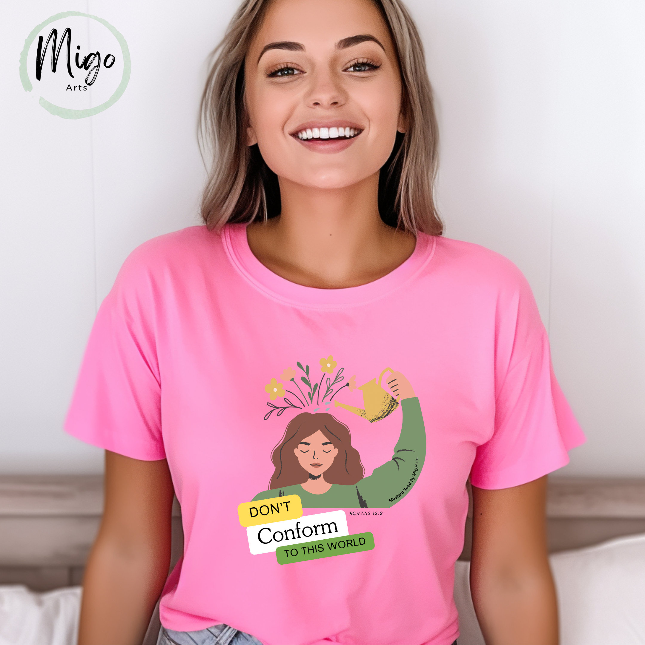 " Don't Conform to this World " T shirt for all Christians Ladies , Be Bold and wear the shirt that reflects your faith