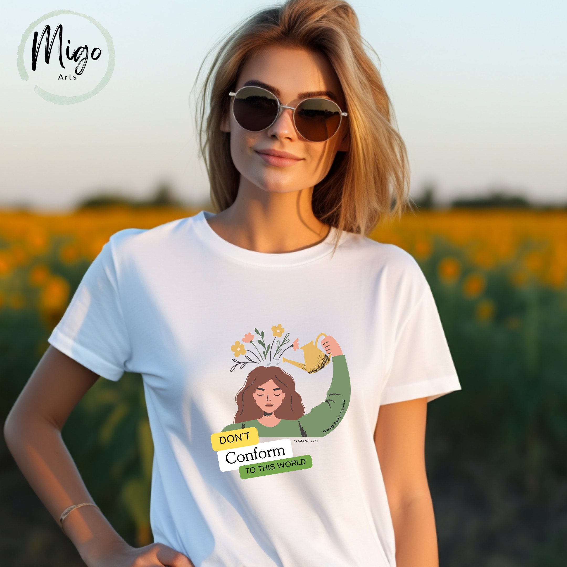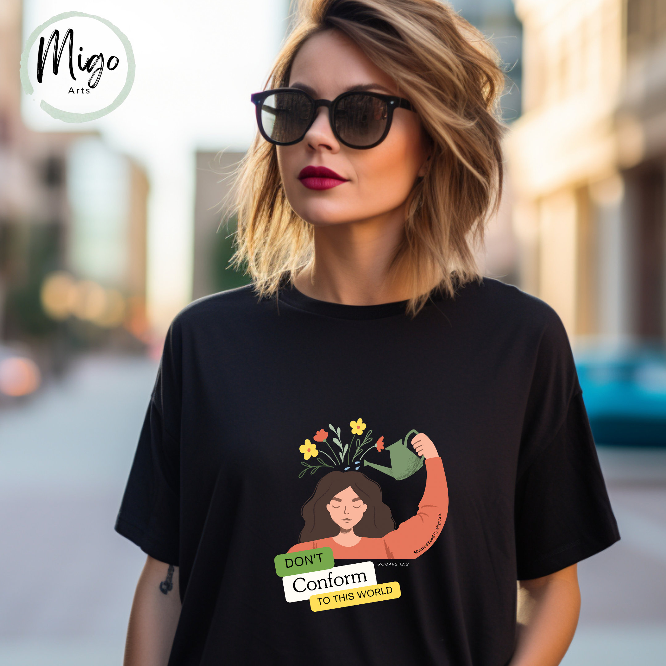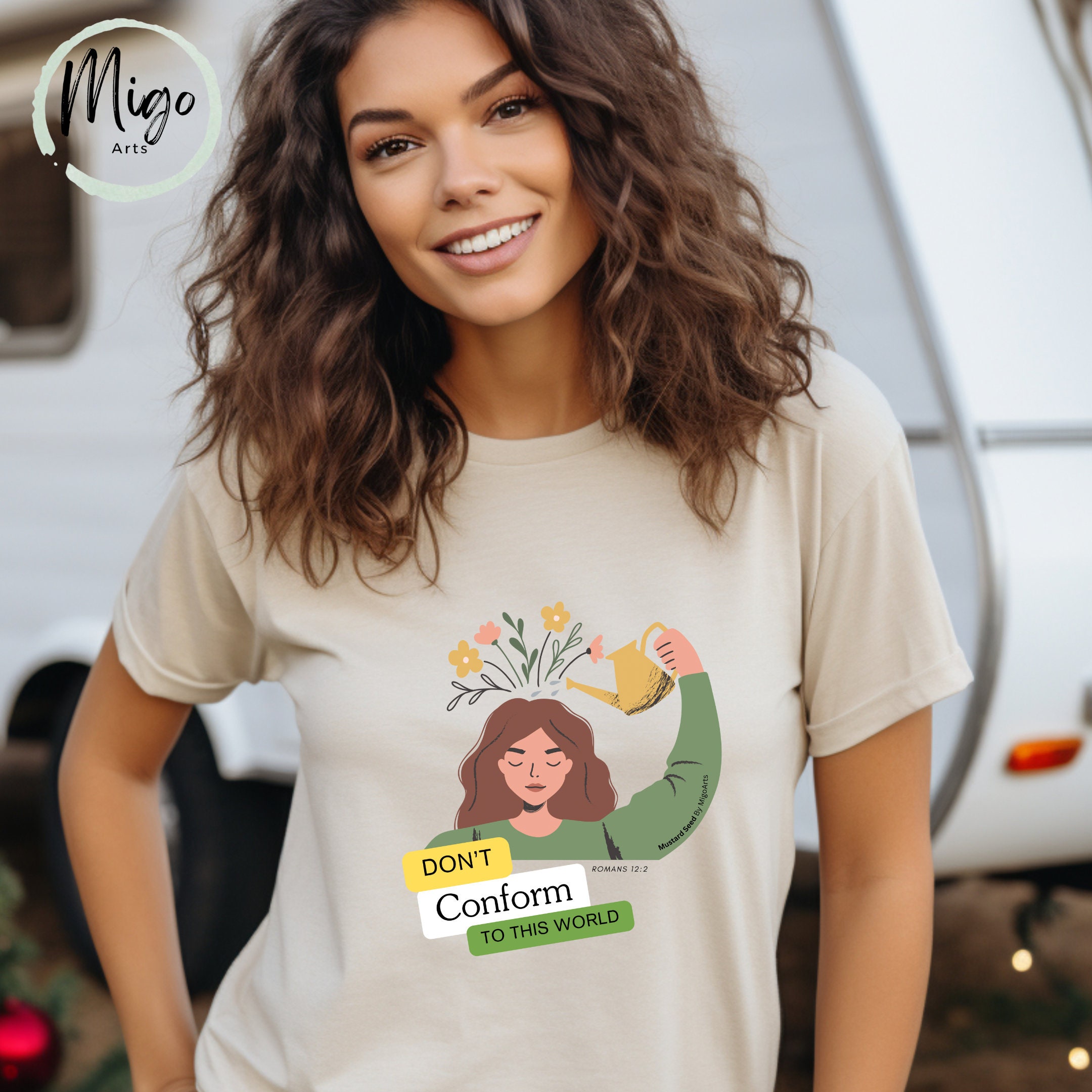 " Don't Conform to this World " T shirt for all Christians Ladies , Be Bold and wear the shirt that reflects your faith